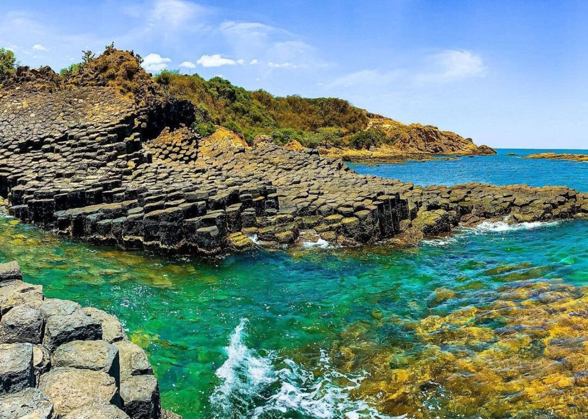 Đây chính là biểu tượng du lịch không thể nhầm lẫn của Phú Yên. Ghềnh Đá Đĩa là một công trình thiên nhiên kỳ vĩ với hàng ngàn cột đá bazan xếp chồng lên nhau một cách hoàn hảo. Các khối đá có hình đa giác, tròn dẹt trông như những chiếc đĩa xếp chồng lên nhau, tạo nên một khung cảnh vô cùng ấn tượng.