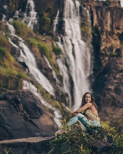 Hãy thử tạo dáng bên dòng thác đang cuồn cuộn đổ xuống, hoặc đơn giản là ngồi trên một tảng đá ven suối lắng nghe thiên nhiên. Màu xanh chủ đạo của rừng cây và dòng nước sẽ giúp những bức ảnh của bạn trở nên nổi bật và đầy nghệ thuật.